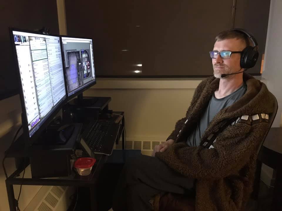 Devon Hack was really missing his D&D game play. Last night was extra special; gaming and wearing his Chewbacca robe.